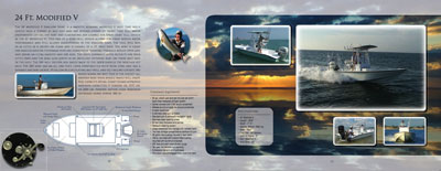 Shallow Sport Boats, as their name suggests, specialize in extremely shallow running boats based on a unique hull design that is the basis for their corporate logo. I created the layout for the brochure for Sugarek Marketing utilizing beautiful stock photography of panoramic ocean scenes along with client-supplied existing boat photography.
